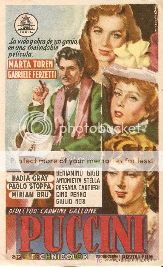 Cercando notizie sui rapporti fra la musica di Puccini e il cinema, è impossibile non imbattersi in Carmine Gallone, prolifico regista che ha avuto il torto di essere stato il cantore dei fasti "imperiali" del fascismo. Nel dopoguerra però ha saputo abilmente riciclarsi continuando a confezionare (come già negli anni '30 e '40) numerosi film-opera che solleticavano il gusto per il melodramma del pubblico popolare. Suo il classico Puccini, infedele e colorata biografia del compositore lucchese, del quale si sta per celebrare il 150° "compleanno".